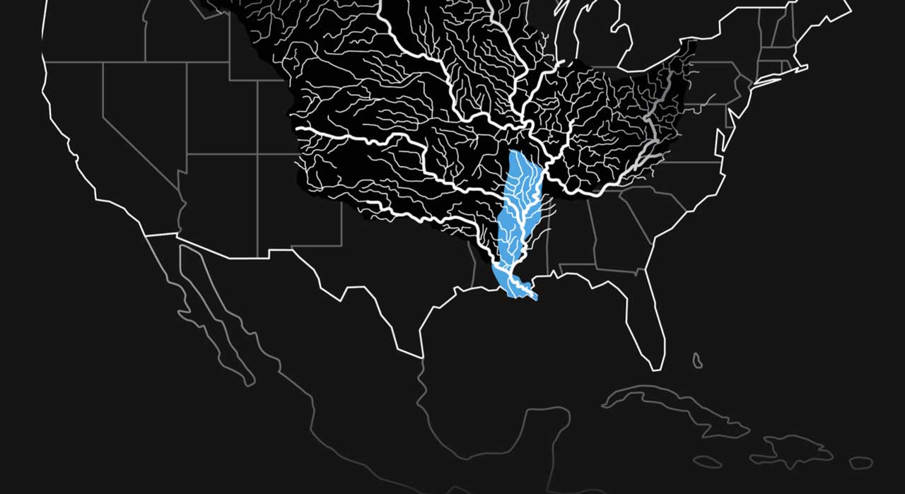 The area in blue is the Lower Mississippi River Basin where our work to restore 1M acres is focused.